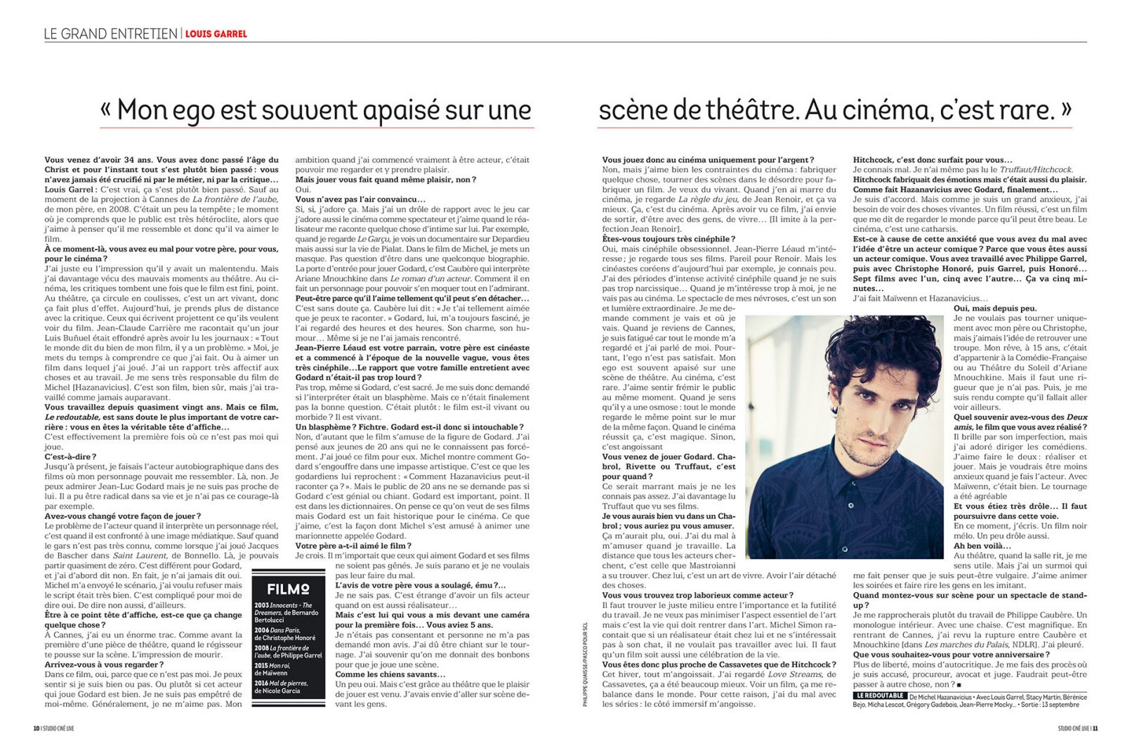 Il rentre tout juste de Cannes, où il a présenté Le redoutable, de Michel Hazanavicius. Il y joue Godard. Oui, LE Godard. Il avait la trouille, il est maintenant content. C’est parti pour une heure de conversation en forme de ping-pong. Tous les coups sont permis.