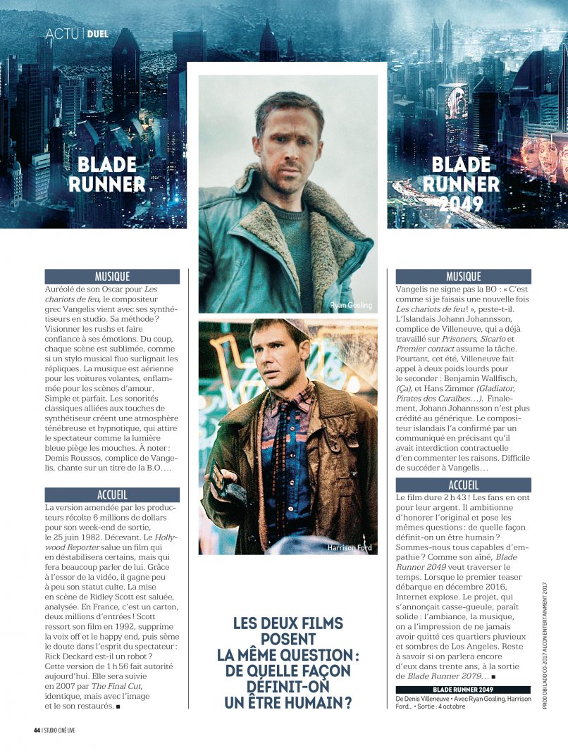 Trente-cinq ans se sont écoulés entre le film culte de Ridley Scott et la suite, signée Denis Villeneuve. Harrison est toujours là, Ryan est arrivé…