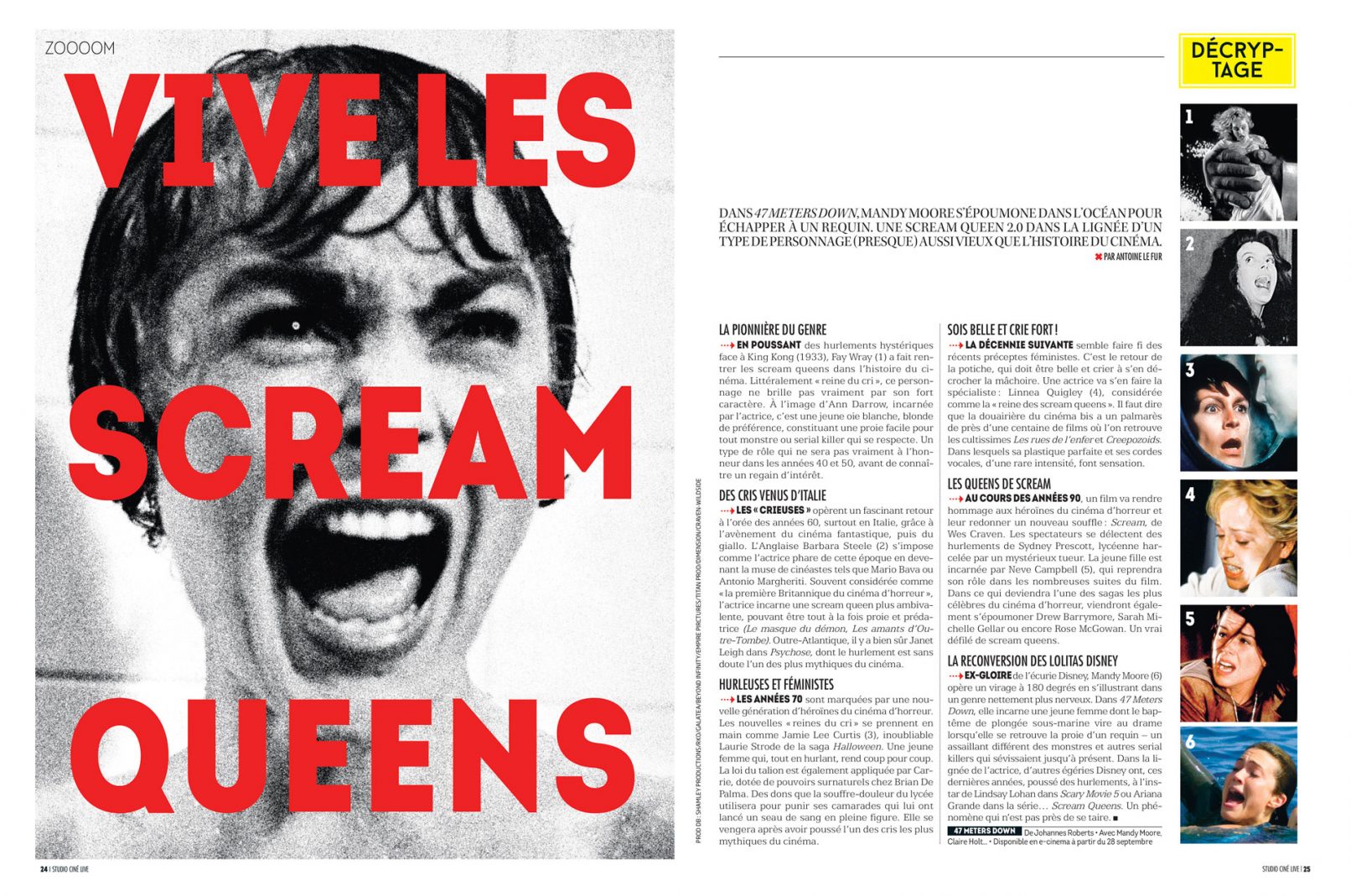 Dans 47 meters down, Mandy Moore s’époumone dans l’océan pour échapper à un requin. une Scream Queen 2.0 dans la lignée d’un type de personnage (presque) aussi vieux que l’histoire du cinéma..