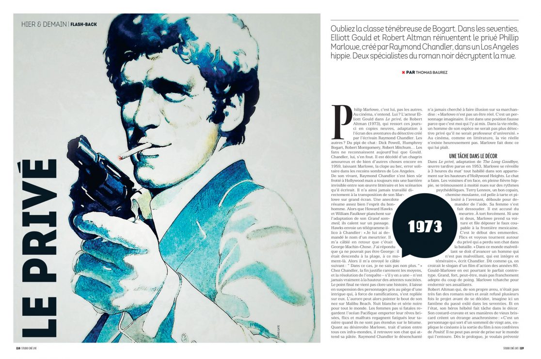 Oubliez la classe ténébreuse de Bogart. Dans les seventies, Elliott Gould et Robert Altman réinventent le privé Phillip Marlowe, créé par Raymond Chandler, dans un Los Angeles hippie. Deux spécialistes du roman noir décryptent la mue.